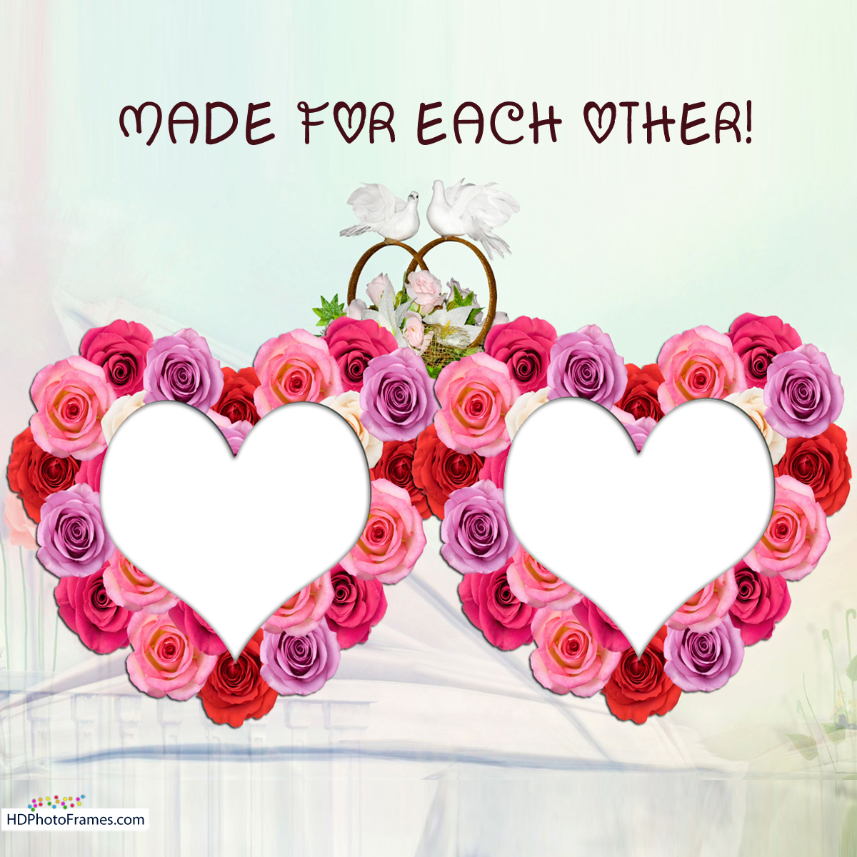 Add 2 photos in one frame now. Make a beautiful double heart photo frame for your love with his or her photo. Edit online heart multi frames now.