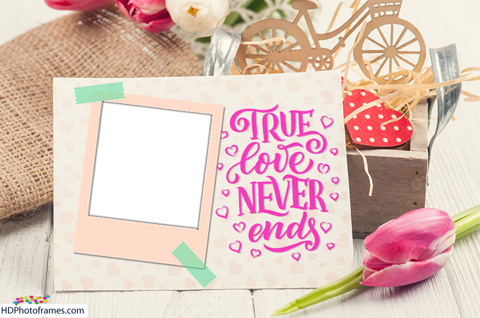 Here we have a love frame card with the message of "True Love Never Ends". If you have someone special whom you express your true love feelings. You should add your photo to this true love frame and send it to them. Show your love feelings in a great and romantic way.